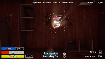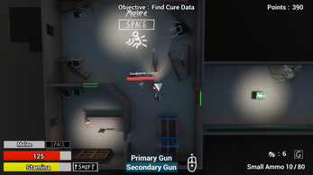 Outbreak Z.E.R.O is a top-down zombie shooter, where you must go and collect the cure to save mankind. This is a school project made by 5 students. Currently there are 5 levels to play through with 4 guns you can buy. Once you're done playing the game, it would be a great help if you filled out the feedback from on the top right of the main menu for any later adjustments we make.